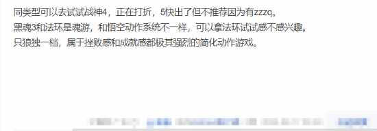 也有不少玩家推荐《只狼》,认为其带给人的爽快感和成就感都很强烈。