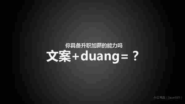 比如:在我们的职业生涯中,如何才能与众不同?如何才能做出与众不同的文案?就像我所演示的,文案需要duang一下,需要加特技,这个特技是什么?加了特技,文案会发生怎样的化学反应?